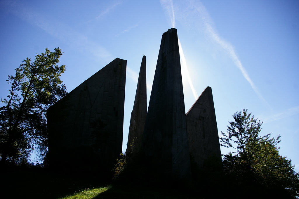 Das Heimkehrer Mahnmal, „Völker, entsaget dem Hass – versöhnt Euch, dienet dem Frieden – baut Brücken zueinander“.