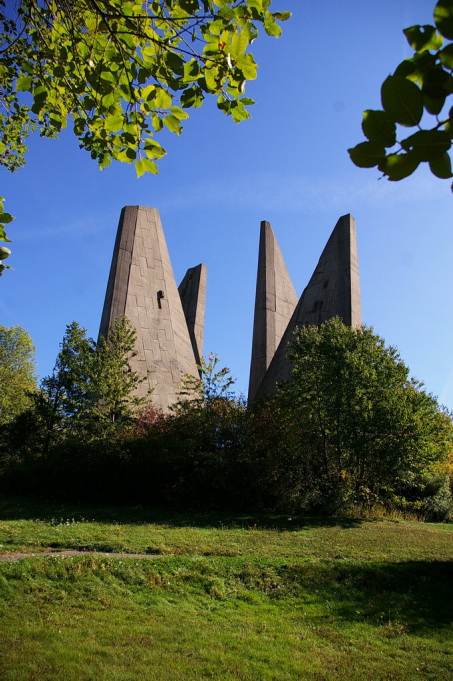 Das Heimkehrer Mahnmal, „Völker, entsaget dem Hass – versöhnt Euch, dienet dem Frieden – baut Brücken zueinander“.