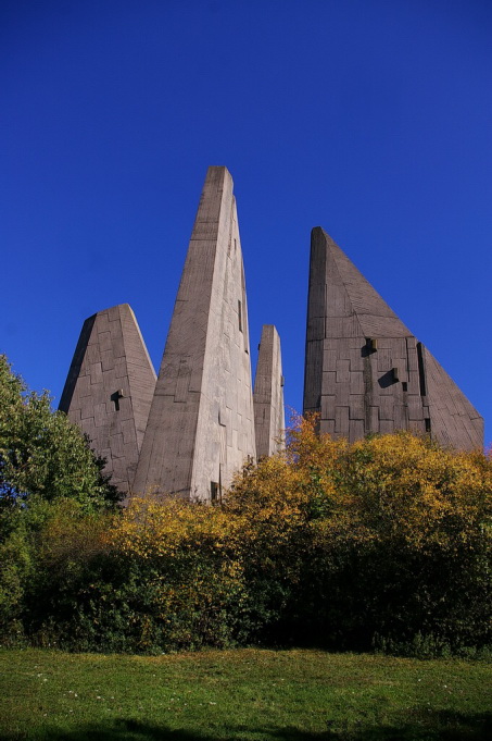 Das Heimkehrer Mahnmal, „Völker, entsaget dem Hass – versöhnt Euch, dienet dem Frieden – baut Brücken zueinander“.