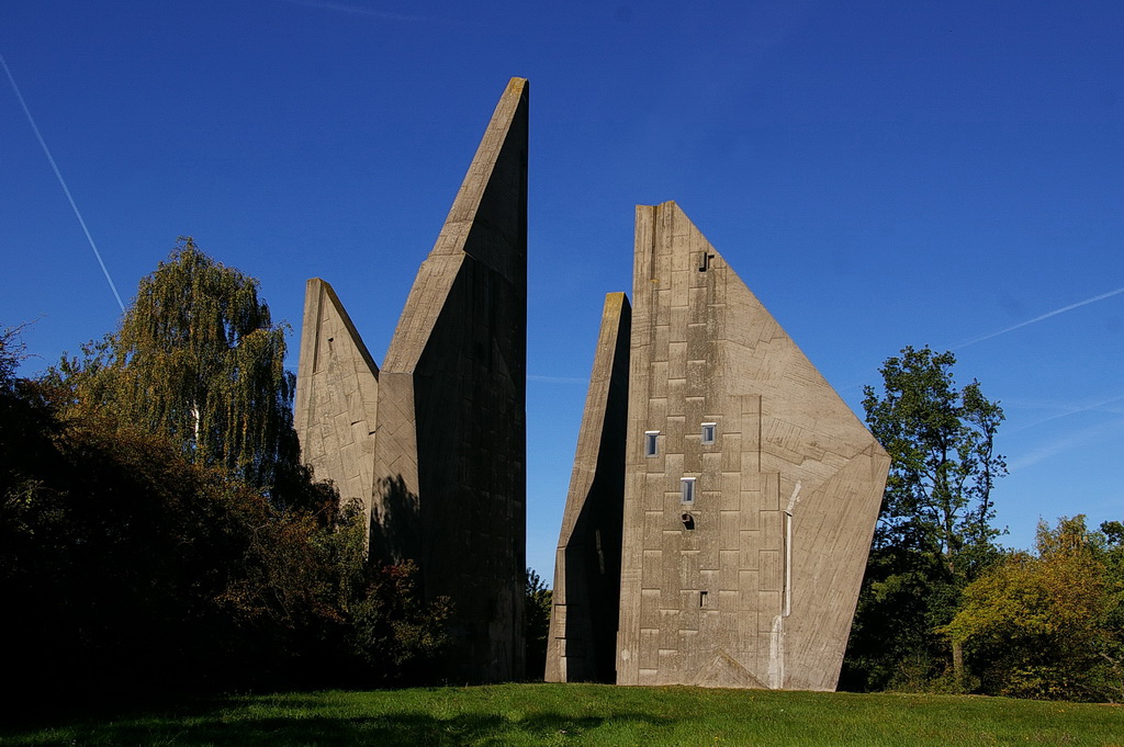 Das Heimkehrer Mahnmal, „Völker, entsaget dem Hass – versöhnt Euch, dienet dem Frieden – baut Brücken zueinander“.